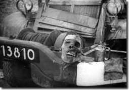 Fransız askerî aracı bir Cezayirlinin kafatasını sergiliyor.