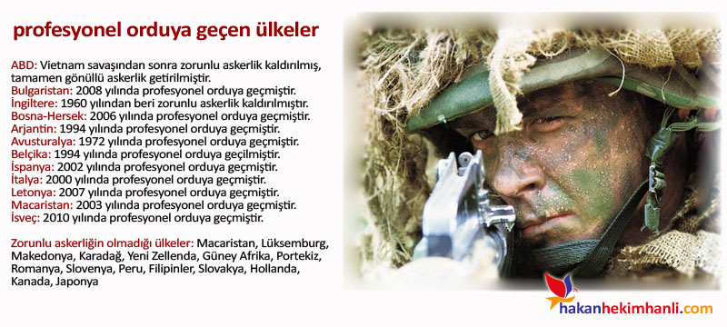 Yukarıdaki bilgilere ek olarak bir de profesyonel askerlik yapan ülkelere bir göz atalım.