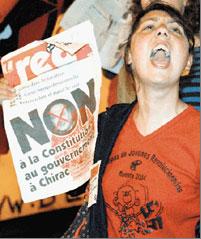 Paris Jussieu Üniversitesi’nde tarih eğitimi gören Helene Dufresne, üyesi olduğu Devrimci Komünistlerin Birliği (LCR) gençlik kolundan arkadaşlarıyla 29 Mayıs gecesi Bastille Meydanı’ndaki ‘Hayır’ kutlamalarına katılmış ve tesadüfen de o tişörtünü giymişti.