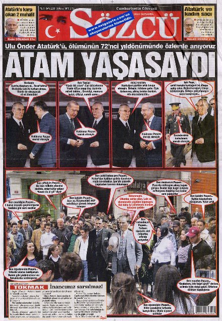 Bu manşet için söylenecek çok bişey yok çocukça ve çağdışı ama ben işe iyi taraftan bakıyorum.Bu tür haberler ve manşetler bazı şeylerin hala farkında olmayan sürü psikolojisiyle yaşayan bi takım insanları belki uyandırır ve karşıdaki zihniyeti ve bu zihniyetin yönetiminde ülkenin düşeceği hali görürler öte yandan ülkemizin milletimizin ve dinimizin selameti için ayrılığa düşmeden kimlere karşı olmamız gerektiğini safımızı nasıl belirlememiz gerektiğini görür ve ona göre davranırız.