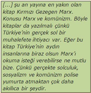 Bakınız meselâ doğru dürüst bir sol muhalefet yok Türkiye’de. Neden? Çünkü Türk Solu da fikrî zemin bakımından oldukça fakirdir. Bir çok insan Marx’ın yazdığı Kapital’i bile okumadan solcu/sosyalist olmuştur. Sovyet tarzı kolektivist fikirleri savunurlar ama Alman ideolojisi, Komünist Parti Manifestosu gibi belgelerde birey kavramına yapılan vurgulardan haberleri yoktur. Bu sebeple Marxizm’i anlamayı amaçlayan bir yazı dizisine başladık. Bu büyük düşünürün kimi temel kavramları İslâm’daki bazı ögelerle benzerlik arz ediyor. Bu benzerliği Yeni başlayanlar için “Müslüman” Marx isimli makalede anlattık meselâ.