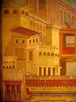 Örnekler çok ama biz Vezüv yanardağının lavları altında kalan Pompei şehrini anmakla yetinelim. Gerek evlerin süslenmesinde gerekse tiyatro dekorunda kullanılan çok detaylı, matematiksel olarak kusursuz perspektif uygulamaları var. Ne zaman mı yapılmış? Sıkı durun, Rönesans’tan tam 1500 sene evvel! (Aşağıda bu resimlerden bir örnek görüyorsunuz, bu sitede çok sayıda örnek var)