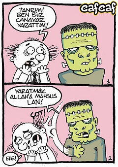 1818 yılında Mary Shelley tarafından kaleme alınan “Frankenstein” romanındaki karakter yapay bir varlıktır. Shelley, romanında Fransız Devrimi’nin başlangıcı ve sonunu bir sembol üzerinden anlatmaya çalışır. Romanda, bir tıp öğrencisinin, Victor Frankestein’in macerası anlatılır. Frankestein, insan “yaratmak” ve böylece ölümsüzlüğün sırrına ulaşmak için mezar ve mahzenlerden topladığı ceset parçalarını bileştirir ve kimya ve elektrik gücünü kullanarak ortaya canlı bir varlık çıkartır. Fakat bu ortaya çıkan varlık tam anlamıyla bir ucubedir. Dev gibi büyük ve son derece çirkin olan bu insandan, diğer bütün insanlar tiksinir ve ondan uzaklaşmaya başlarlar. Bunun üzerine bu varlık bir kenara çekilmek mecburiyetinde kalır ve son derece büyük acılar çeker. Bu dayanılmaz acılar kendisinde intikam hissinin gelişmesine neden olur. İntikam hisleriyle kendisini meydana getiren Victor’dan intikam almaya karar verir. Victor’un sevdiklerini, ailesini ve yeni evlendiği eşini öldürür. Victor Frankenstein, yaratığı ‘ucubeyi’ öldürmek için O’nun peşine düşer, ancak yolda ölür. Ucube ise, yaşadığı acıya dayanamayarak kendini yok etme kararı alır ve ortadan kaybolur.