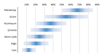 Endüstride sektöre göre enerji ihtiyacı farklı. Daha doğrusu üretilen malın toplam maliyeti içindeki enerjinin payı bir sektörden diğerine değişiyor. Meselâ metalürji, cam, çimento, petrokimya… Bu sahadaki firmalar yoğun biçimde enerji kullanıyorlar. “Enerji yoğun” dediğimiz bu sektörlerin büyük bir kısmı aynı zamanda “emek yoğun” sektörler. Yani toplam ulusal istihdam içindeki payları büyük.