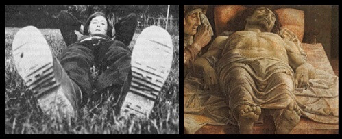 Daniel Chandler «Göstergebilimin Temelleri» isimli kitabında perspektiften bahsederken bu iki resmi okurlarının nazarlarına vermiş. (Semiotics: The Basics, Londra, 2002) Eğer cisimleri yakından bakıldığında göründüğü kadar büyük çizmeye çalışırsak gülünç tasvirler çıkıyor ortaya. Bu yüzden merkezî perspektifi uygularmış gibi yapsa da büyük ressamlar matematiksel/bilimsel tasvirleri “düzeltme” yoluna gitmişler. Meselâ İtalyan ressam Andrea Mantegna 1480’de yaptığı Cristo morto tablosunda Hz. İsa’nın (a.s.) ayaklarını matematiksel ölçülere göre daha küçük çizmiş, tersine başını büyütmüş. Zaten Rönesans’ın öncülerinden ve teorisyenlerinden olan Leon Battista Alberti de 1436’da yayınlanan kitabı De pittura’da “resim yaparken tıpatıp aynısını yapmayın, hürmet ve güzellik için itidalli olun” demiş!