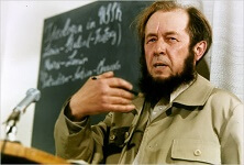 “… Batı’nın insan haklarını değil ödevlerini savunma vakti geldi. […] Batı’nın bugünkü durumuna bakarak ülkem Rusya’ya bir model olarak tavsiye etmem istense bütün dürüstlüğümle reddederim. Hayır, sizin toplumunuzu model alarak bizimkini dönüştürmek istemiyorum. On yıllar süren baskı ve şiddetten muzdarib olduktan sonra insan ruhu reklâmların işgâliyle, televizyon ve berbat müziklerle aptallaşan tüketim toplumun alışkanlıklarından daha yüce şeylere yönelmek istiyor. Nasıl oldu da Batı muzaffer adımlar attıktan sonra şu anki salaklık derekesine düştü? […]