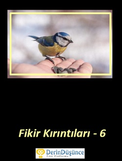 Elinizdeki bu kitap, Fikir Kırıntıları-6, Derin Düşünce’nin sosyal medyada paylaştığı mesajları kitaplaştıran çalışmaların altıncısı. (Buradan indirebilirsiniz) Maksadımız, iş hayatındaki uzmanlaşmadan kaynaklanan ufuk daralmasını engellemek, merak uyandırmak ve okurlarımızı araştırmaya teşvik etmek. Kısacası, bahsettiğimiz konuları derinleştirmek isteyenler makale ve kitap okuyarak kendilerini geliştirmeye devam etmeliler. Fikir Kırıntıları-6’nın sorguladığı meseleler şunlar: