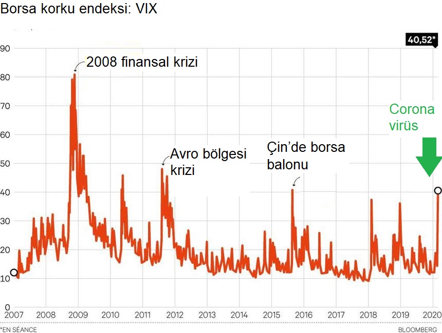 - Corona virüs piyasayı korkuttu mu? Evet. VIX yükseldi yani güvenli işlem yapmanın “sigorta primi” arttı. OPEC ve Uluslararası Enerji Ajansı (International Energy Agency – IEA) petrol tüketim tahminleri 2008 krizi sonrasına kadar indi.